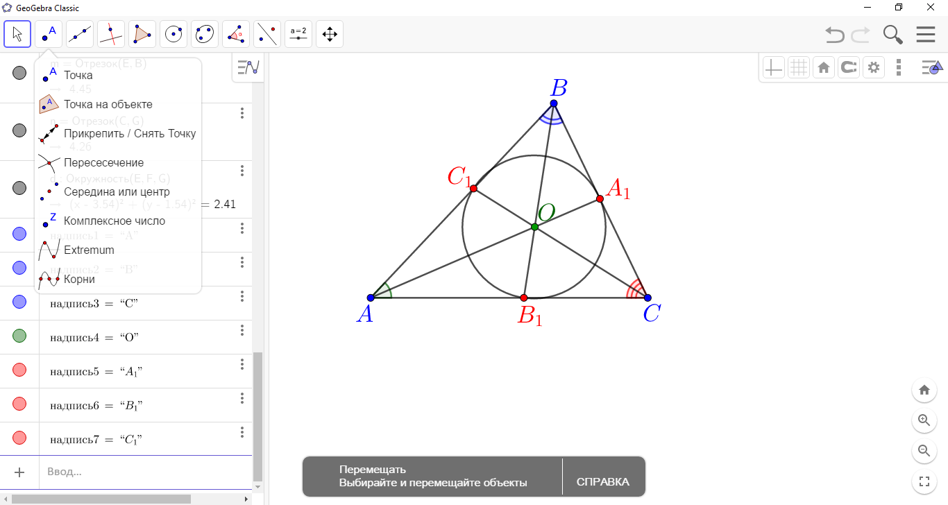 7.1.2.15 үшбұрышқа сырттай және іштей сызылған шеңберлердің центрлерінің орналасуын түсіндіру |