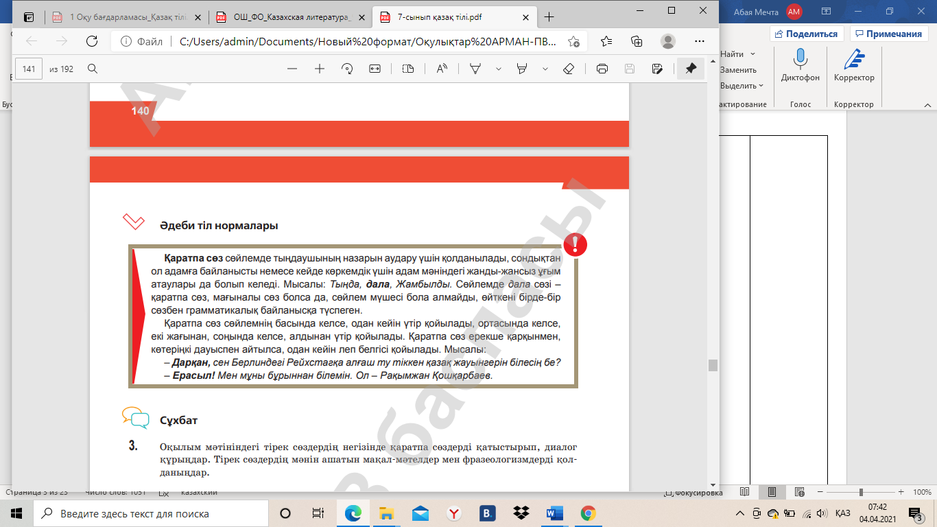 7.2.1.1 мәтіндік және графиктік (кесте, диаграмма, сурет, шартты белгілер) ақпаратты интерпретациялау; 7.4.4.5 оқшау сөздердің қызметін түсіну, ажырата білу. |
