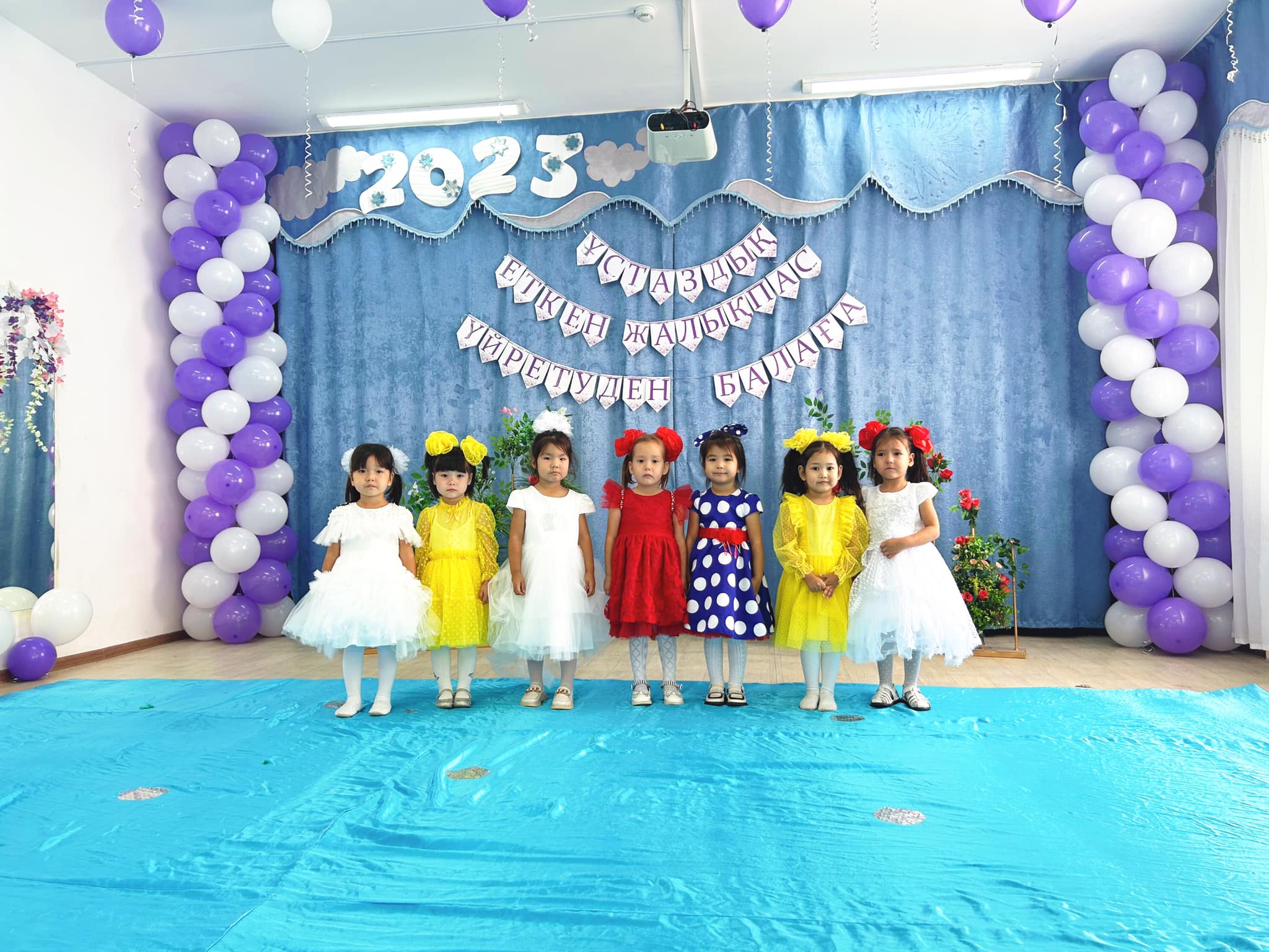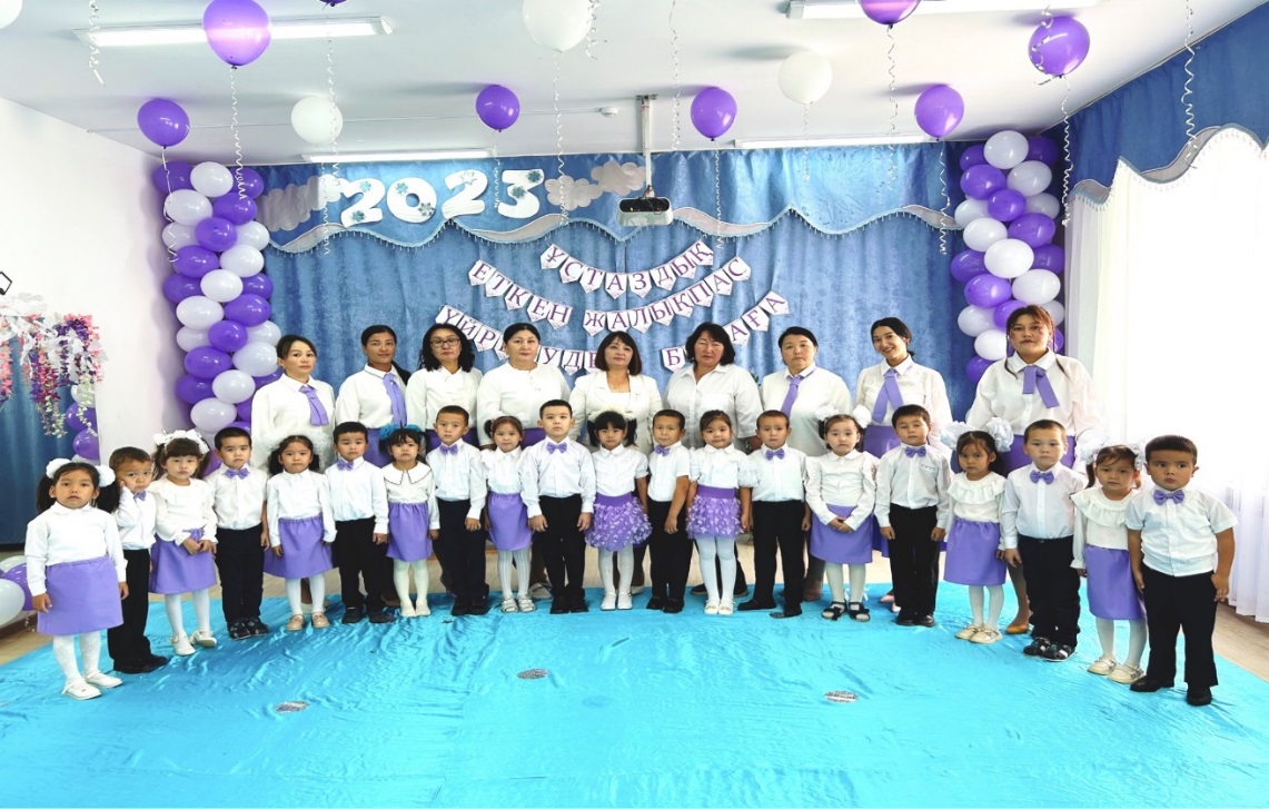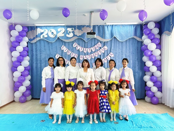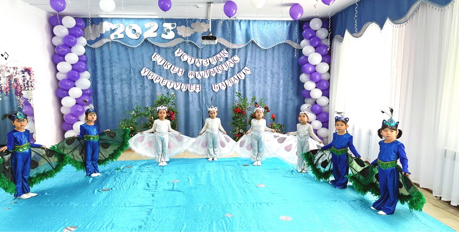 Алтынтөре: Иә! Мектепке дейінгі білім мен тәрбие көшін жылжытып келе жатқан ұстаздар қауымын төл мерекелеріңізбен шын жүректен құттықтау үшін сахнамыздың төріне бақшамыздың басшысы Алмагүл Ерболатқызын шақырамыз!