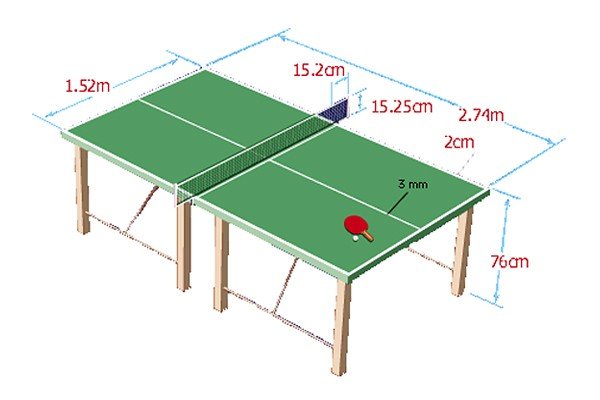 Бұл динамикалық спорт түріне екі адам қатысады (2 және 2 жұп бар). Акция қараңғы жасыл немесе қою көк түспен боялған теннис үстелінде өтеді, оның өлшемдері келесі болуы керек: