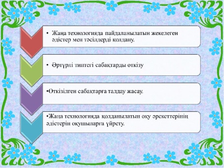 Міне, осы міндеттерді қамтитын «дамыта оқыту» жүйесі даму заңдылықтарын ескере отырып, теориялық ойлауға бағытталған іс-əрекет арқылы баланың жақын даму аймағында оқытады. Нақ осы мəселелерді жүзеге асыруға бағытталған оқыту технологияларының көпшілігі ұжымдық ой қызметі негізінде баланы өз іс-əрекетінің субъектісі етуге ұмтылады, мақсатты оқу іс-əрекеті барысында нақты оқу міндеттерін шеше отырып, даму педагогикалық ықпалдың алдын алатын іс-əрекеттік оқыту тəсілі арқылы балада ақпараттық жəне жалпы біліммен қатар, амалдар мен құндылықтар жиынтығын, біліктілігін қалыптастырады [2]. Жаңаша оқыту технологиялардың бірі — «Оқу мен жазу арқылы сын тұрғысынан ойлауды дамыту» технологиясы — технологиялардың ішіндегі шоқтығы биік, ерекшелігі мол, құнды технология.