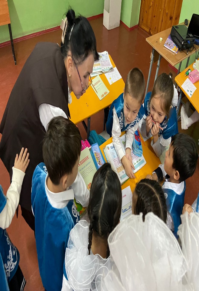 (Ұ) 1- тапсырмада «Сұрақ-жауап» әдісі қолданылады. Тыңдалым-айтылым – Балалар, кітапта берілген сурет бойынша сұрақтарға жауап бере отырып, әңгіме құраңдаршы.