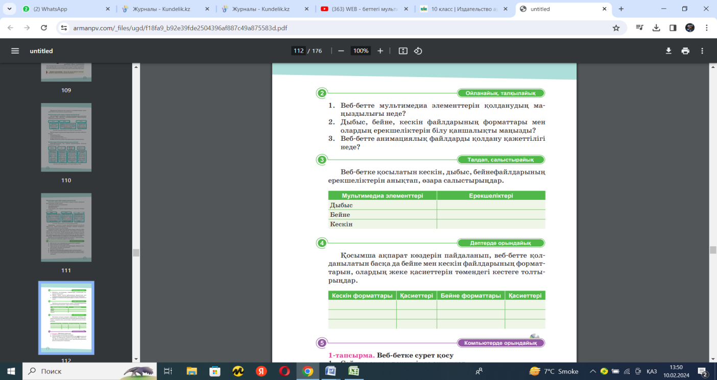 Веб беттегі мультимедиа 10 сынып ҚМЖ