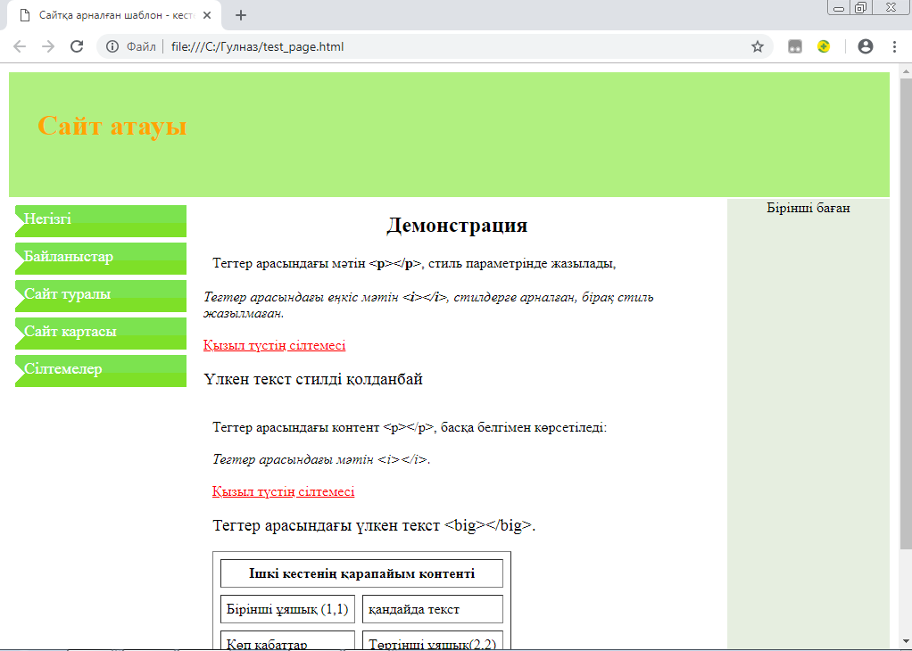 1-сурет. Web сайтқа арналған шаблон. Кестелік верстканың нәтижесі