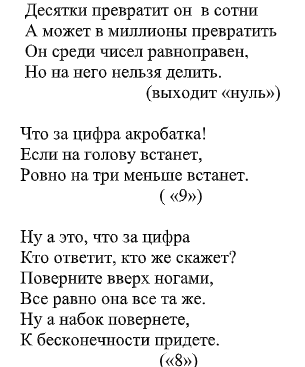 зрителями : Дополнительные вопросы 1)Цапля , стоя на одной ноге ,весит 15 кг. Сколько будет весить цапля, если она встанет на две ноги? (15 кг) 3)Хозяйка несла в корзине 100 яиц, а дно упало. Сколько яиц осталось?(ни одного, все разбились) 4)Летели три страуса ,одного убил охотник. Сколько страусов осталось? (страусы не летают). 5)Шли по дороге 2 мальчика и нашли 2 доллара. За ними ещё четверо идут, сколько они найдут?(ничего не найдут) 7)Сколько концов у пяти палок? А у пяти с половиной? (12)