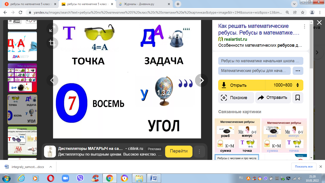 (Контрольное время- 5 минут; 1 балл за правильно решенный ребус)
