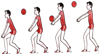 1. Допты төменнен қабылдау – допты серіктес лақтырады (қашықтық 2–3 м, кейін ол біртіндеп 10–15 м дейін өседі).