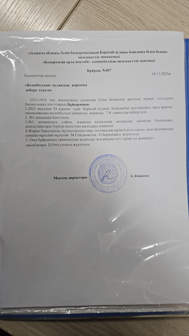 2025-2026 оқу жылында Ұлттық мектеп лигасы волейбол ойыны аудандық кезең 7-8 сынып қыздар 3-орын «Кемертоған орта мектебі» КММ. 8 «И» сынып оқушысы Азат Альфия, үздік ойыншы атанды.