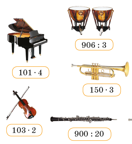 1.Актуализация жизненного опыта. Тетради с домашней работой вы мне сдали, я сегодня проверю. -Поднимите руки, у кого возникли затруднения при выполнении дз? Как вы сними справились? Открываем тетради, записываем число, классная работа. Минутка каллиграфии 12 х (И) Математический диктант: 1. Рабочий за час изготавливает 12 деталей. Сколько деталей он изготовит за смену, если смена длится 6 часов? 2. Сумму чисел 18 и 30 уменьшите в 6 раз. 3. 57 уменьшите в 3 раза. 4. Число разделили на 7 и получили 11. Что это за число? 5. Делимое 11, делитель 5, найдите частное. 2. Вводное задание на подготовку к изучению нового. Ребята, обратите внимание на буквы, которые записаны на доске. Как вы думаете , что эти буквы могут обозначать? Где в математике мы встречаемся с буквами? Данные буквы можно встретить в буквенных выражения и уравнениях. И сегодня мы будем с вами вычислять. (К) Работа в коллективе Найди значения выражений, и ты узнаешь, какие музыкальные инструменты входят в состав симфонического оркестра.
