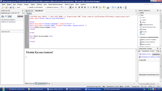 Share Point Designer файлдарын басқару үйреншікті тәсілмен жүзеге асырылады. Құрал-саймандар жолағындағы Сақтау батырмасы арқылы web-парақты тез сақтауға болады. (7 сурет).
