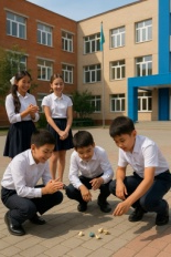 Pictures Teacher: Now we will use Present Continuous in real Kazakh situations. I will give each of you one picture. You will look at it and write 3–5 sentences about what is happening now. (Teacher gives different pictures. One picture for each student.) Teacher (reminding): Remember: we are not talking about yesterday. We are talking about NOW. Teacher: Are you ready? Now describe your pictures. You can read your sentences. Teacher: Now take your emblem (3 / 2 / 1) |