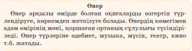 ✅ -Мәтін теру ережесін сақтай отырып, “Өнер” мәтінін тереді. ✅ -Терген мәтінді бумаға сақтайды.