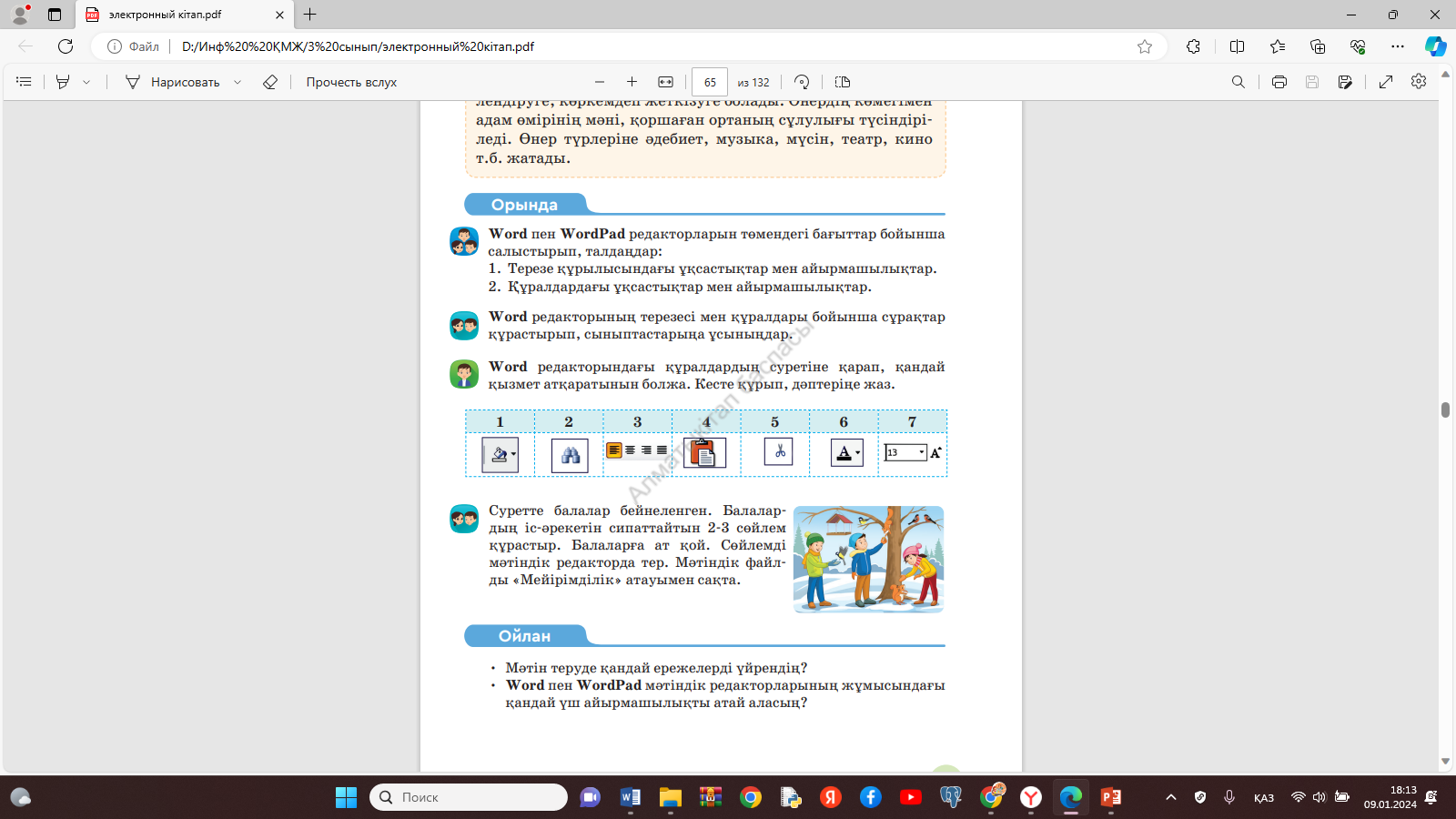 Word мәтіндік редакторы 3 сынып