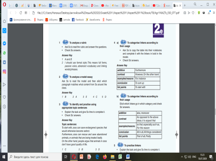 Ex. 4 p. 30 a) To categorise linkers according to their usage • Ask Ss to copy the table into their notebooks and complete it with the linkers in bold in the model. • Check Ss’ answers. Answer Key