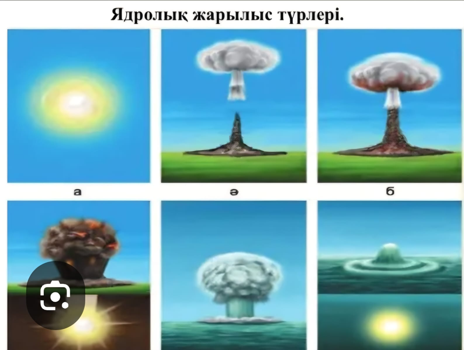 «Фотаға түсіру» әдісі бойынша сұрақ-жауап 1.Ядролық оқ-дәрілердің түрлері қандай? (ядролық,термоядролық,нейрондық) 2.Ядролық жарылыстар ненің көмегімен жүзеге асырылады? (зымыран, авияция және артиллерия) 3.Ядролық оқ-дәрілердің қуатының өлшемді? (тротил мөлшерімен өрнектеу кило, миллиондық мега тонналармен өлшенеді)