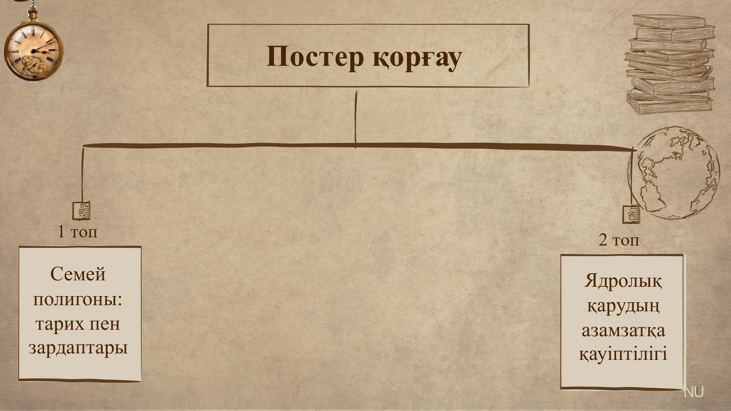 аталады. Постер қорғау 1 топ. Семей полигоны: тарих пен зардаптары. 2 топ. Ядролық қарудың адамзатқа қауіптілігі.