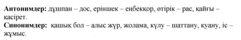 ӘТН. Омоним, антоним,синонимдерді көркемдік ерекшеліктеріне сай қолдану. ӘТН. Жұрнақ арқылы жасалған туынды сөздерді және күрделі сөздерді ауызша және жазбаша тілдесу барысында қолдану. |