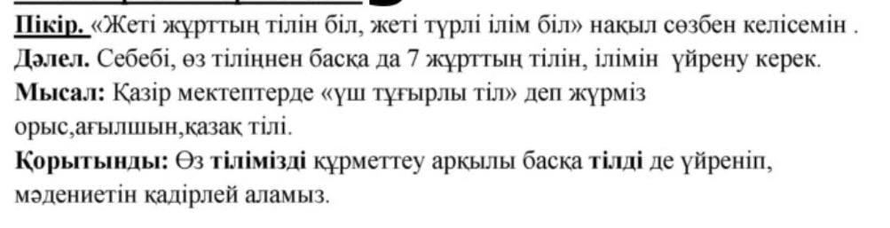 Ертегі кітаптар оқу 10-тапсырманы орындатады. «Жеті жұрттың тілін біл, жеті түрлі ілім біл» деген мақалды түсініп, « Төрт сөйлем» тәсілімен жаз. Ықтимал жауап:
