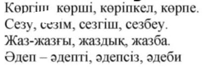 Дескриптор: - Берілген түбірлерге жұрнақ жалғайды. -Туынды сөз жасайды. Жалпы: 2 ұпай