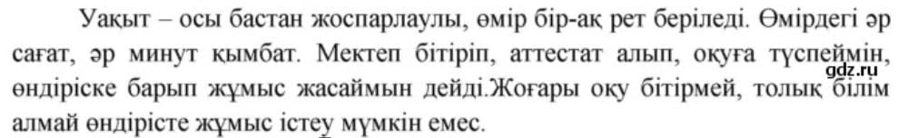 1-тапсырманы орындатады. Мәтінді тыңда. Мектеп бітіргелі жатқан оқушының сөзіндегі «уақыт» ұғымына қатысты ойды таратып түсіндір.