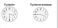 Рефлексия -Сабақты толық түсінген оқушылар сағаттың 2/1 мин тұр сұралады. Түсінбеген оқушылар сағаттың 4/1 мин тұру ұсынылады.