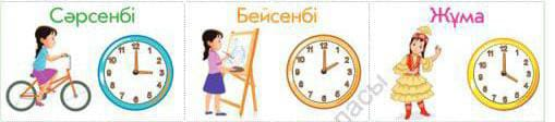 дұрыс шығарады; Дескриптор: Аптаның әр күнінде оқушының қай сағатта не істегенін анықтап, сағаттан көрсетеді; ҚБ: Керемет! Дескрипор: