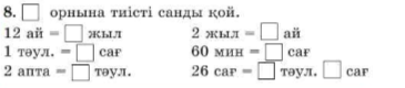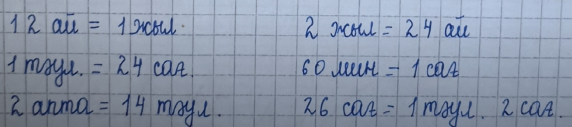 2.1.3.4.Уақыт (сағ, мин, ай, жыл) өлшем бірліктерін олардың арақатынасына сүйеніп түрлендіру. |