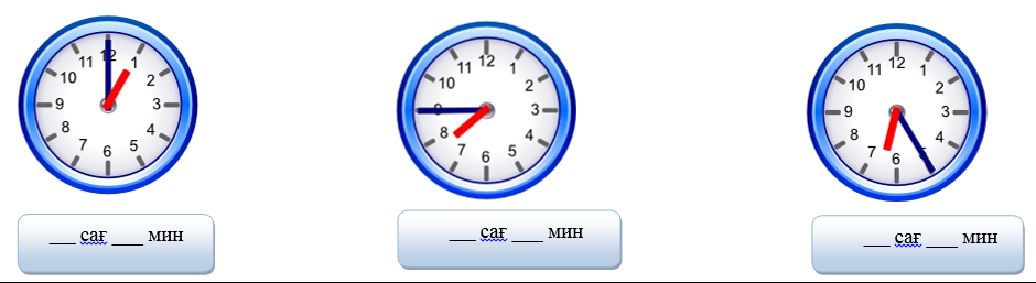 2.1.3.5.Уақытты циферблат бойынша анықтау: сағат жəне минут. |