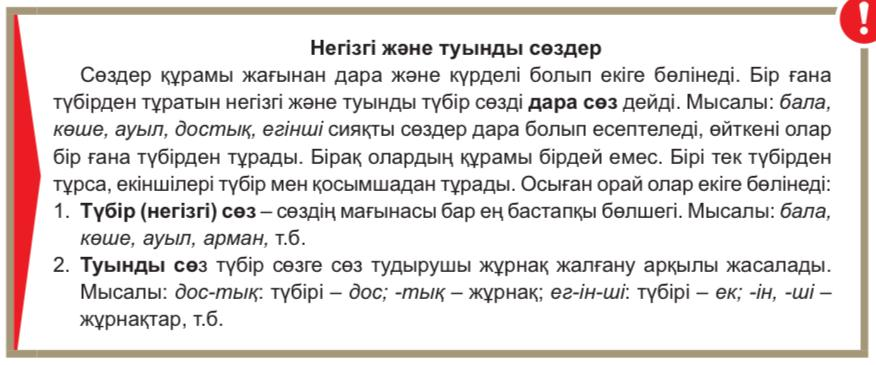 Негізгі және туынды сөздер туралы біледі