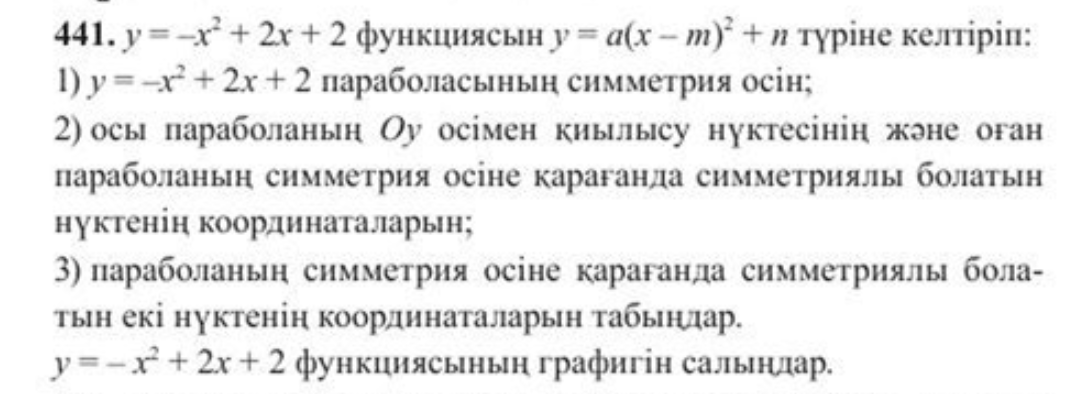 2-топ. Берілген квадраттық функциялардың төбелерінің координаталарын табыңдар. Координаталық жазықтықта белгілеңдер. Нүктелерді қосу арқылы фигура шығарыңдар.