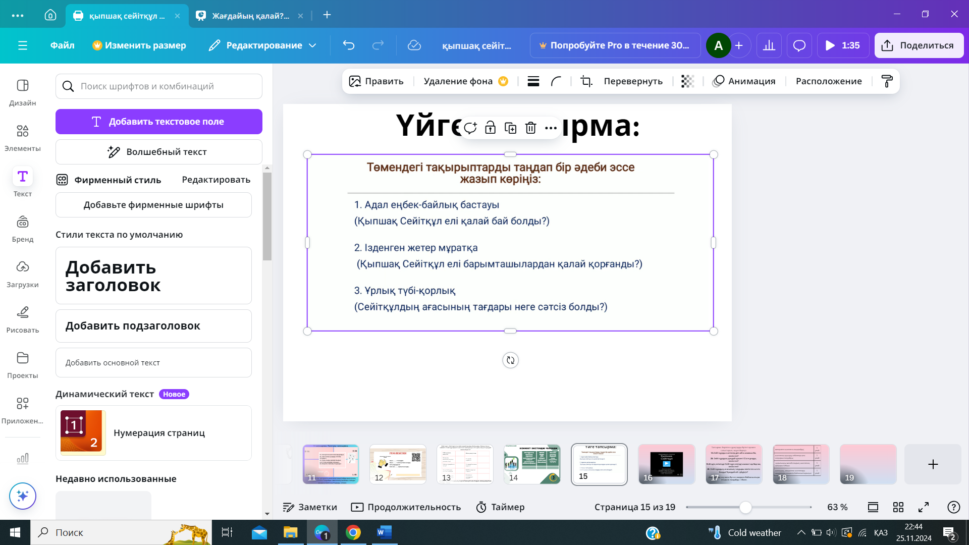 Тапсырма: «Қыпшақ Сейтқұл қандай адам?» Сейтқұл бейнесін әңгіме мазмұнына сүйене отырып талдайық. Венн диаграммасы. Сейітқұл мен ағасының мінез-құлықтарының ұқсастығы мен айырмашылығын жазыңыз. (Иықтас көршімізге оқып береміз) Тапсырма. Апгрейд әдісі 3-тапсырма. Берілген сұрақтарды бүгінгі күнмен салыстырып, жауап беріңіз 1А.Сейітқұлды кәсіпкер деп айта аламыз ба, неліктен? 2Б. Сейітқұлдың қандай қасиеті Сізге ұнады, неліктен? 3А.Біздің елімізде Сейітқұл секілді азаматтар бар ма, неліктен? 4Б. Сейітқұлдың ағасының тағдыры неліктен сәтсіз болды? Қандай ой түйдіңіз? Тапсырма. Кейс әдісі. Сейітқұл отыз үйлі кедей ауылды бай қылды. Халық санын көбейтті. Сейітқұл әрекетін кестеге толтырыңыз. Сіз туған еліңізге қандай көмек бересіз? Үйге:
