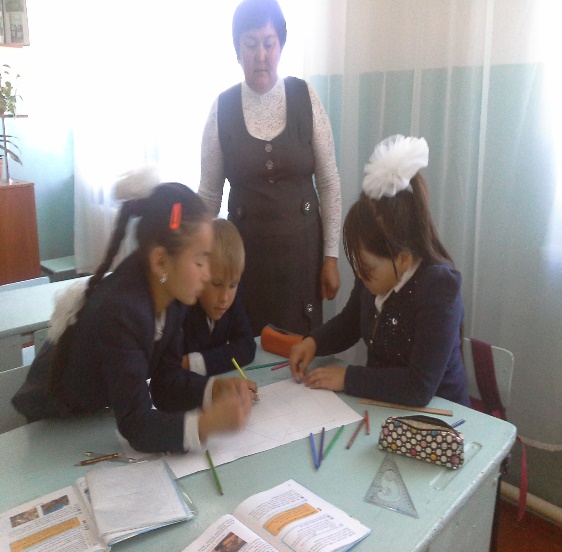 Оқулықтағы мәтінді түсініп оқу.Топтар ауысу арқылы бір-біріне түсіндіруі қажет деп тапсырма бергенде оқушылардың тапсырма орындауында сабаққа қызығушылығын байқадым.Оқушыларға жұппен отырғанша,топпен жұмыс істеген ұнайды екен.Оқушылар қосылып әркім сөзіне мәлімет жинап топтық жұмысты жақсы орындап шықты.Өткен сабаққа қарағанда бүгінгі сабақ тиімді өтті.