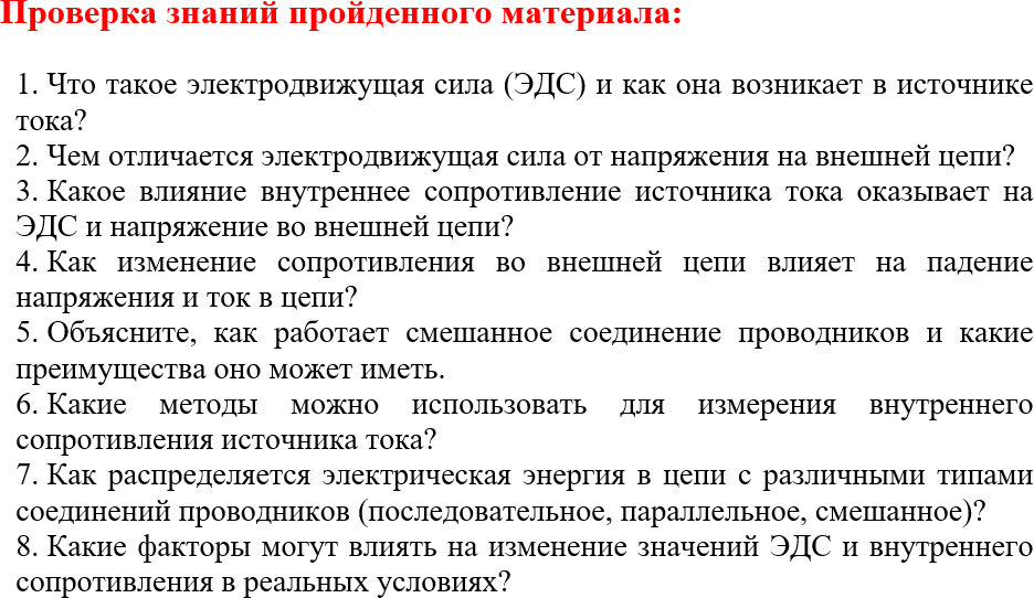 - Учащиеся отвечают на вопросы закон Ома для полной цепи электрического тока;