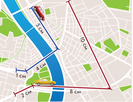 На плане они отметили дороги отрезками. Найди суммы длин красных отрезков, синих отрезков. Составь задачи по кратким записям.