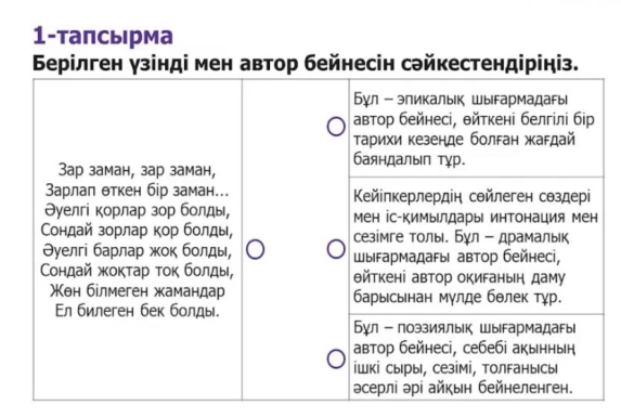 -Берілген үзінді мен автор бейнесін дұрыс сәйкестендіреді