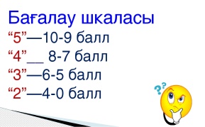 ҚБ: Жарайсың! ҚБ: Тамаша! Дескриптор: Тест тапсырмаларын орындауды үйренді-1б Өздері тест тапсырмаларын құрай алады-1б Тест туралы ойларын айтады |