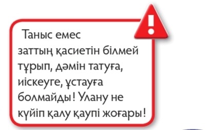 Оқулықпен жұмыс. Мәтінді түсініп оқиды. Сен білесің бе? Заттың қорабында, сауытында немесе затбелгісінде арнайы белгілер көрсетіледі. Ол заттың қасиетімен құрамын білдіреді.