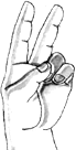Одан кейін бас бармағы мен сұқ саусағын түзетіп, бір-бірімен түйістіреді.