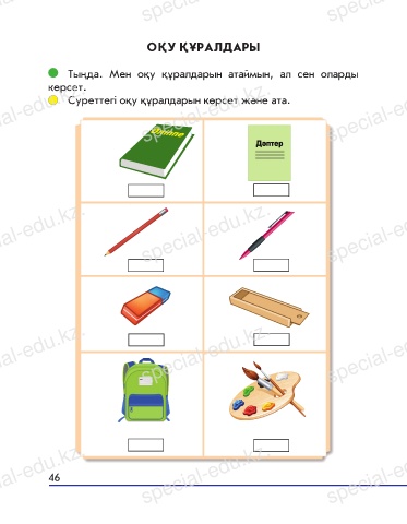 Қимыл-қозғалыс оқулық Жұмыс дәптері Оқу құралдары Суреттер Кері байланыс парақтары |