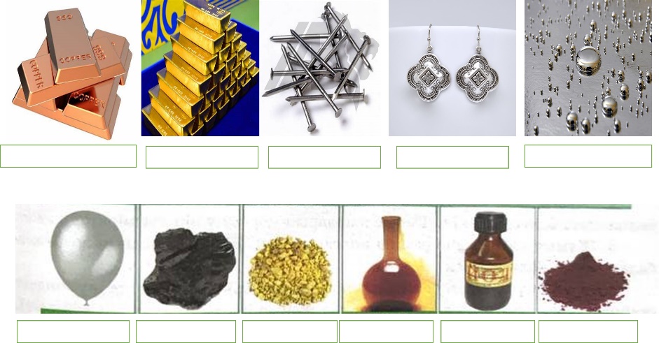 Дескриптор. Жалпы 3 балл Металлдардың қасиетін анықтайды Металл еместердің қасиеттерін біледі. 3-тапсырма. Өлеңді оқы. Металдар мен бейметалдардың негізгі қасиеттерін анықта. Сұрақтарға жауап беріңдер. Иә! Тұтас дәуірді жайдан-жай Металл атымен атамаған. Сиқыршы әрі еліктіргіш Оған басқа не тең келер. Металға ғажап жарқыл берер, Тетігі оның қызықтырар. Металл бетіне жарық жұтылып, Электрондарға айнала ма, Сәулелену толқыны бізге Электрондар толқынын жібере алар, Оларды біз жарқыл деп қабылдаймыз. Металдың бейметалдан түрі бөлек, Сынап, мыс, күмістің жарқылы бар. Бейметалды ұрып өзгерте алмайсың, Табиғат металды иілгіш еткен. Неше миллион жыл өтсе де, Алтынға тең келер ештеңе жоқ. Бір-ақ грамм алтын кесегін Үйіңе дейін созарсың байқап. Металдың электрөткізгіштігі Түн түнегін жарық етер. Жасанды Күн мен жасанды Ай, Мыс сыммен жүгірген ток сондай. Металл бойымен әр үйге Жылу да жеткізе алады, Ол не деп аталады?.. (темір) (Л.С. Зорина) 1. Металдың құрметіне аталған қандай дәуірлерді білесің? (қола дәуірі) 2. Металда қандай байланыс түрі бар? электрөткізгіштік 3. Қандай физикалық қасиеттер металдық байланыстар тудырады? Электрөткізгіштігі, 4. Ең иілгіш металл қайсысы? Алтын 5. Қай металл түрі электр қуатын жақсы өткізеді? Мыс, күміс, алтын, алюминий. 6. Автор металдың қандай қасиеттері туралы сұрады? Иілгіштігі, электрөткізгіштігі, жылуөткізгіштігі. Дескриптор. Жалпы 3 балл 4-тапсырма. Суреттер галлереясы. Суреттерді металл және металл емес заттар берген аттарын атап, қайсысына жататынын анықтаңдар.