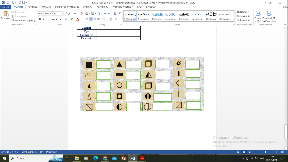 6.3.3.3 Қазақстандағы пайдалы қазбалардың орындарын және қолдану салаларын анықтау |