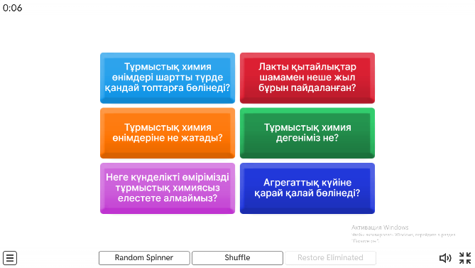 (ҚБ) мұғалім 1-10 балл аралығында бағалайды Дескриптор: Жалпы – 2 балл: Тұрмыстық химияға қатысты сұрақтарға жауап береді |