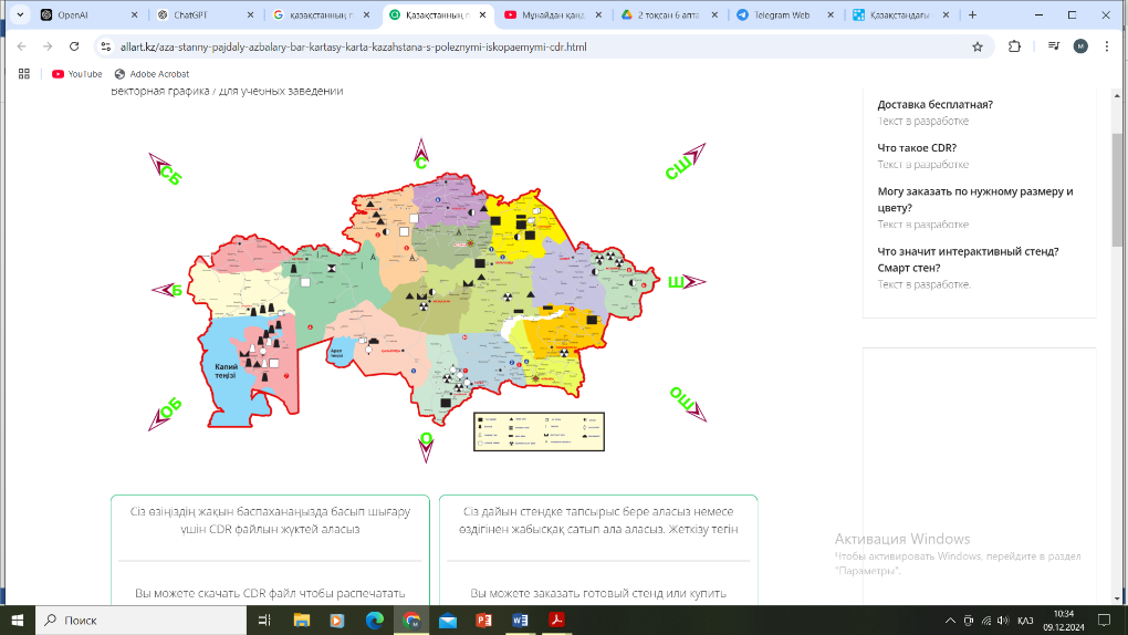 Қазақстандағы пайдалы қазбаларды өндеудің ірі орталықтарын атау және көрсетеді ЕББҚ: Қазақстандағы пайдалы қазбалардың ірі орталықтарын көрсетеді; |