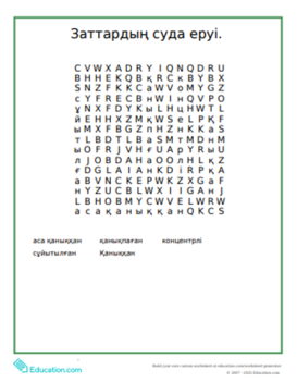 Оқушылар берілген нұсқау бойынша топта жұмыс жасайды. https://www.education.com/worksheet-generator/reading/word-search/frobcf