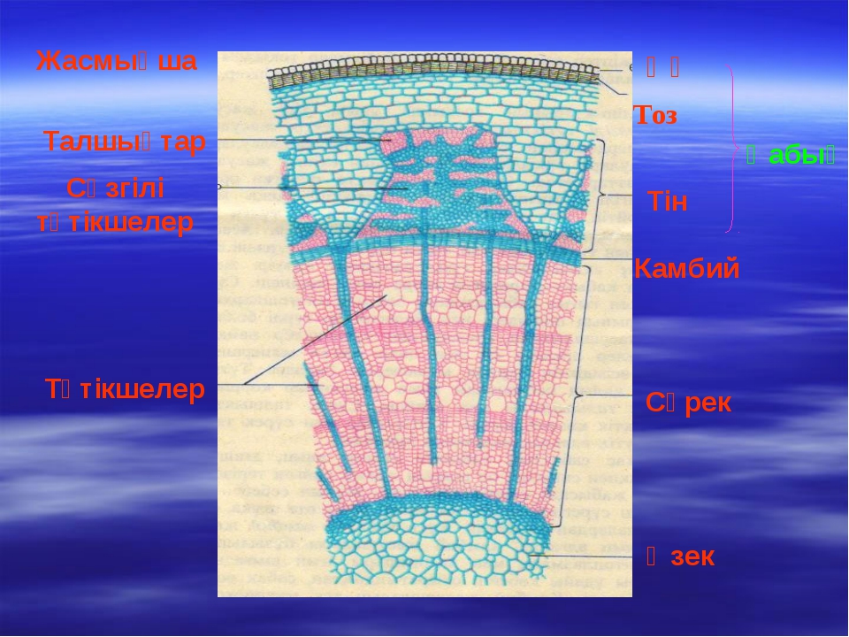 Сабақжәнетамыр.Сабақтыңішкіқұрылысы:қабық,камбий, сүрек,өзек.