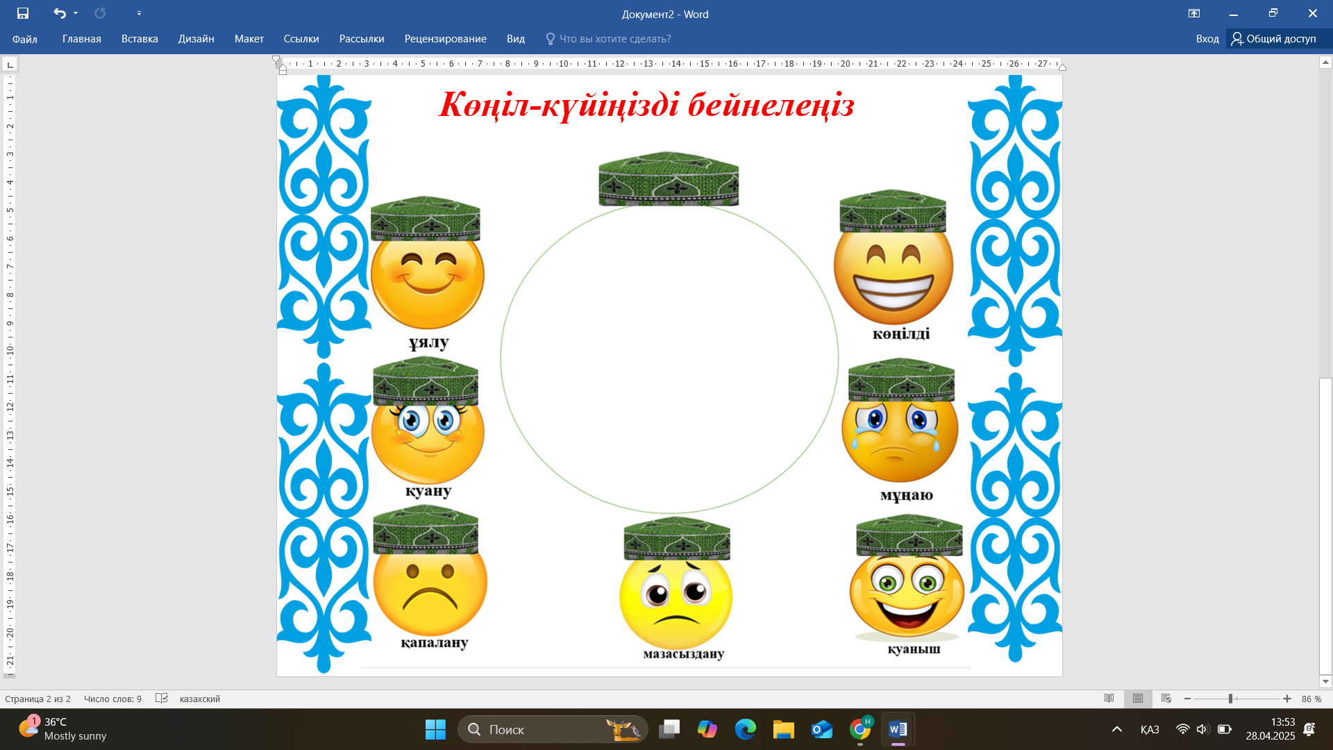Мұғаліммен амандасады. Оқушылар қолдарындағы парқшаға көңіл-күйлерін белгілеп суретін салады. Интербелсенді тақтадан тапсырманы орындайды