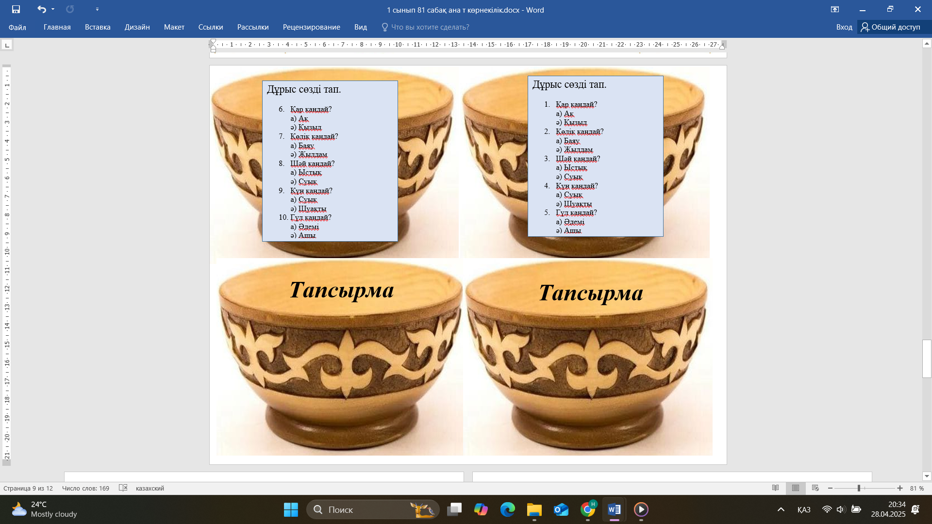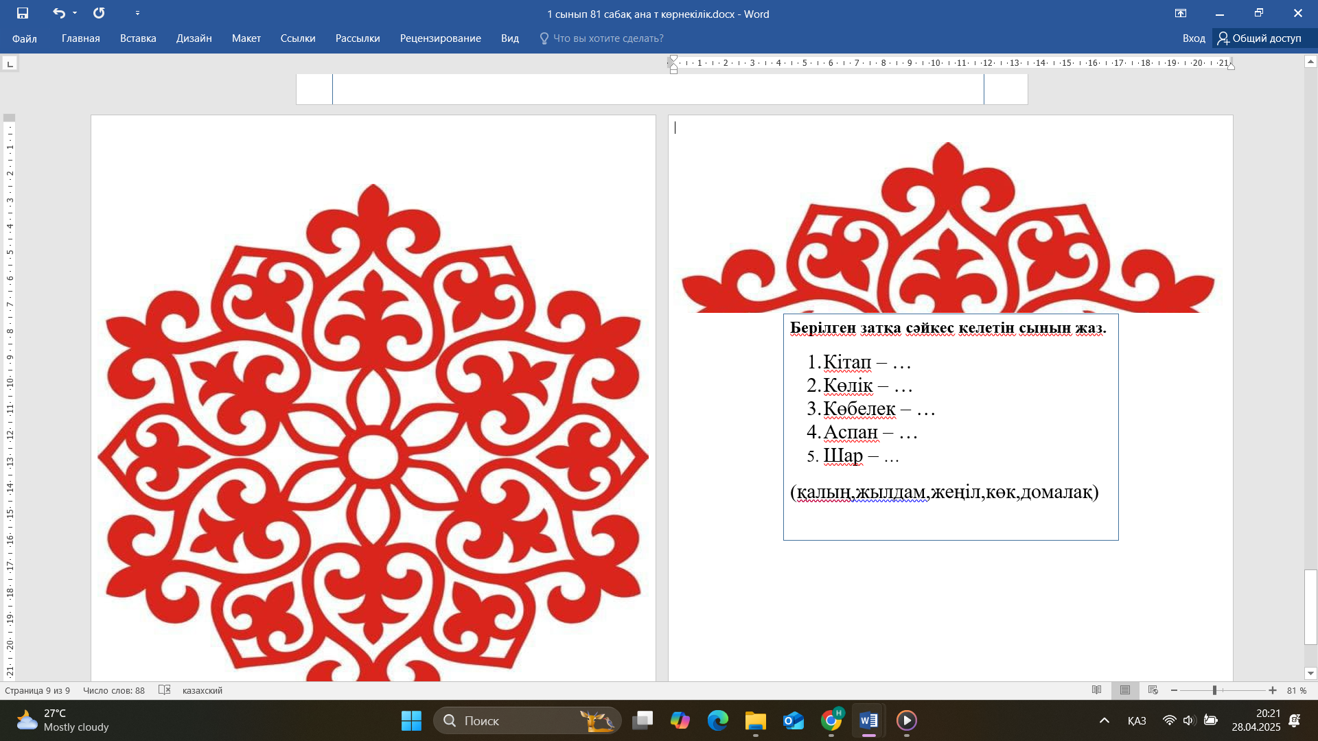 81-сабақ. Заттың сынын білдіретін сөздер.Мұғалім |