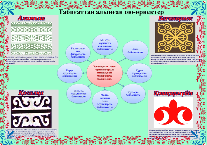 Көрермендерді зергерлікке баулу арқылы, дизайн өнері арқылы қазіргі заман талабына сай кәсіпке бейім болып өсуін, кемелденуін және нарық жағдайында оңтайлы жеке тұлға болып қалыптасуын, шыдамдылығын, ойлау қабілетін қамтамасыз ете отырып, ұлттық ою-өрнектердің орналасу тәсілдерін үйрету жолдары.