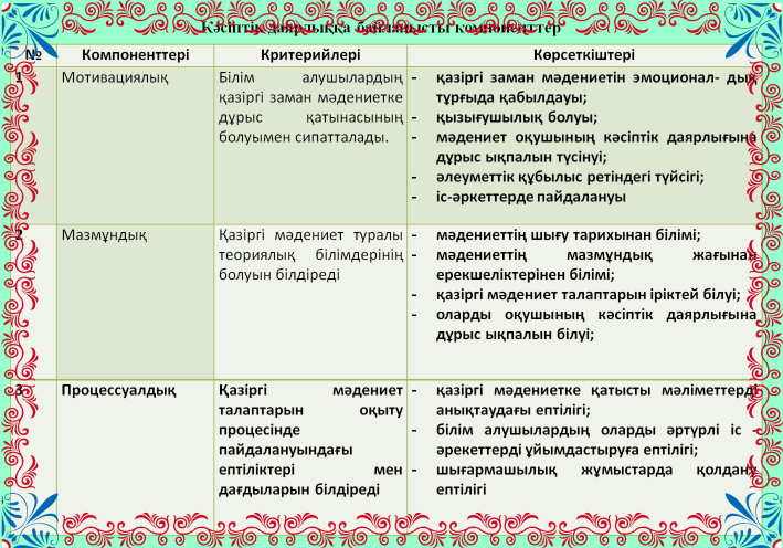 1.3 Білім алушыларды қазіргі мәдениет талабына сай кәсіпке даярлаудың мүмкіндіктері