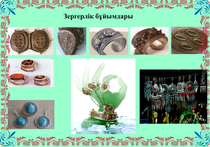 Қазақстан территориясындағы зергерлік өнердің қалыптасу тарихын, сол кезеңдердегізергерлік бұйымдарды анықтау;